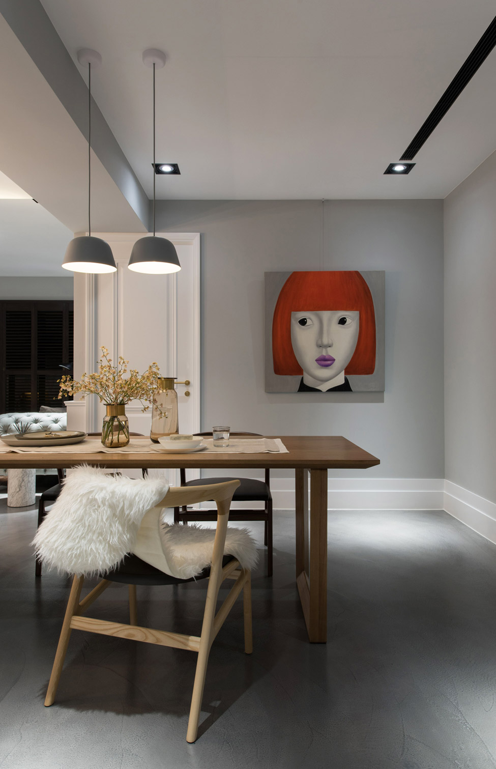 DESIGN CONCEPT 本方案的業(yè)主定位就是年輕的白領(lǐng)精英,他們追求時尚、事業(yè)有成,理性而不失生活情趣,他們需要區(qū)別于平常狀態(tài)的居住概念,用一種更加輕松的態(tài)度去享受生活,家居布局上采取無拘無束,隨意的形式,把個人的生活與工作空間合二為一,不放過任何一閃而過的靈感,休息與工作,時間與空間,可更大限度地互補(bǔ)互換,以獲得更大的彈性和自由度,將不同的功能融合在一個有不明顯界限的空間內(nèi),空間復(fù)合的同時,功能也隨之復(fù)合了,體現(xiàn)出集工作、休息、娛樂為一體的強(qiáng)大的多功能性。既可將工作文件或手提電腦挪到餐桌上處理,也可以在長長的書桌上邊上網(wǎng)邊用餐,體現(xiàn)出濃厚的生活和工作的情趣。