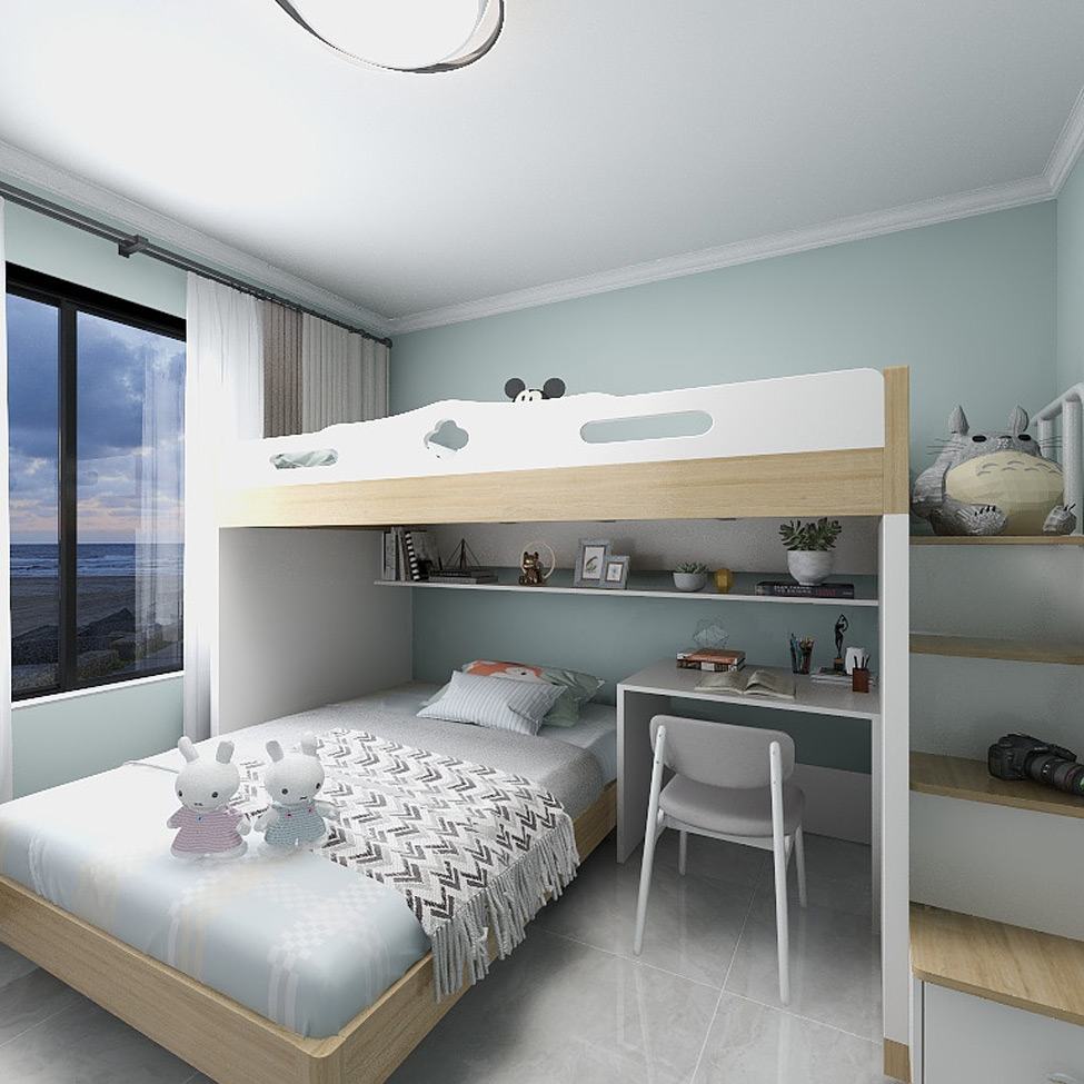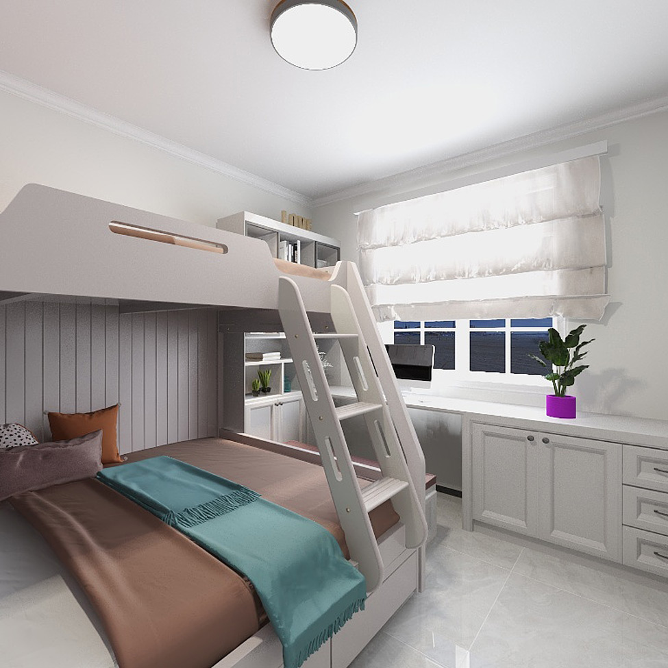 兩個次臥室都是給孩子的一個學(xué)習(xí)和娛樂的空間,所以采用了上下床的一個搭配,也方便后期老人來家里面有地方住。女孩房采用了淡粉色的一個效果,彰顯出了女孩的溫爾文雅,知書達理的一個形象。男孩房則是采用了淺藍色的效果,體現(xiàn)出了男孩的活潑向上,積極樂觀的一個形象。 同時也濃縮了房間的細節(jié)。從而彰顯出房子里面干凈,明亮的一個效果。